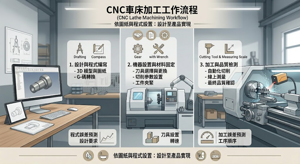 - CNC車床的精度、速度與加工範圍考量:根據加工精度需求來選擇車床,並考慮車床的加工範圍。